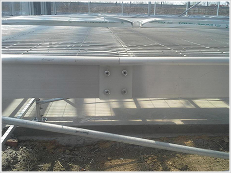 5.在滾動體上組合苗床工作臺,并鋪設(shè)鋼絲網(wǎng)面,鋁合金作為圍邊。
